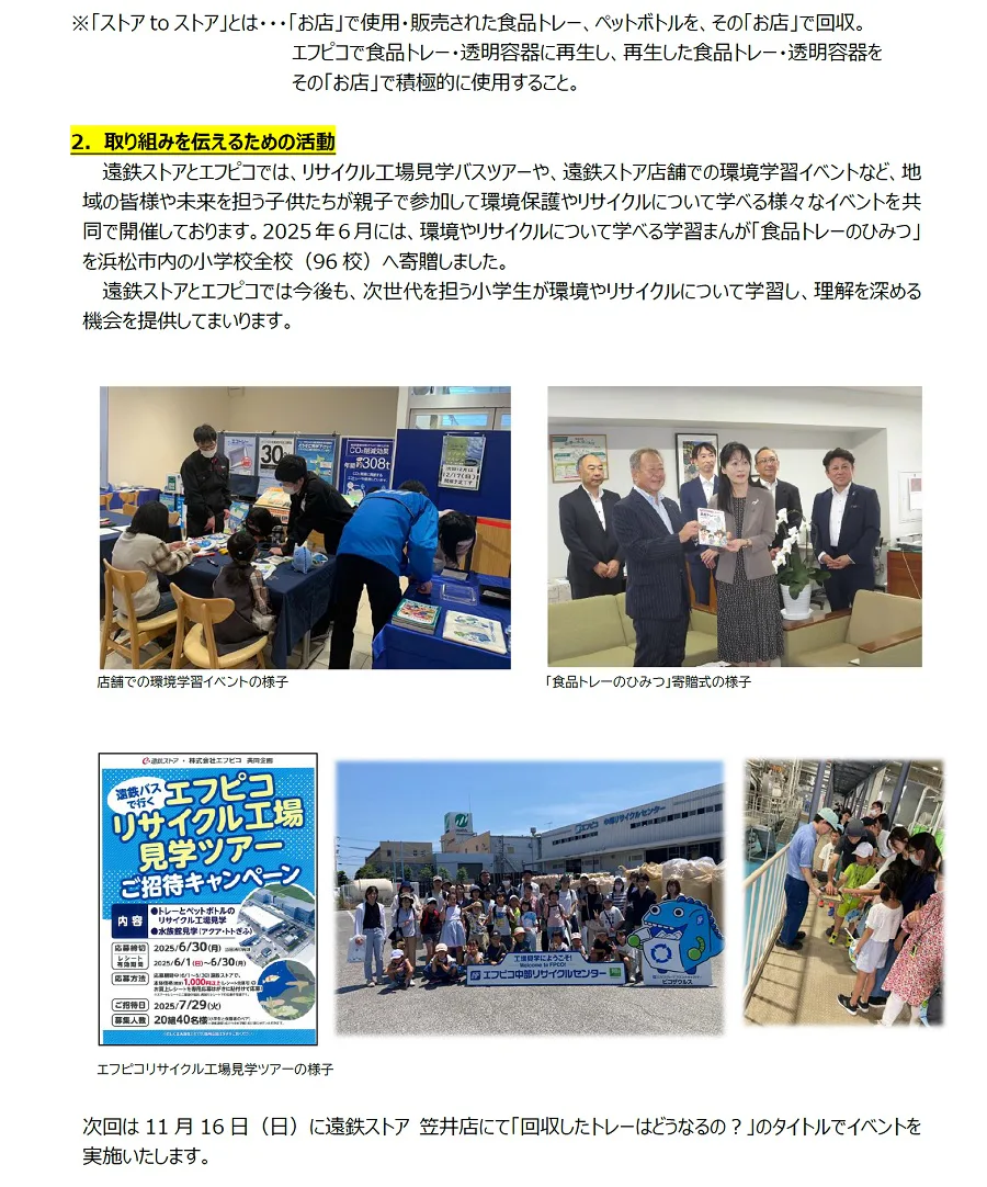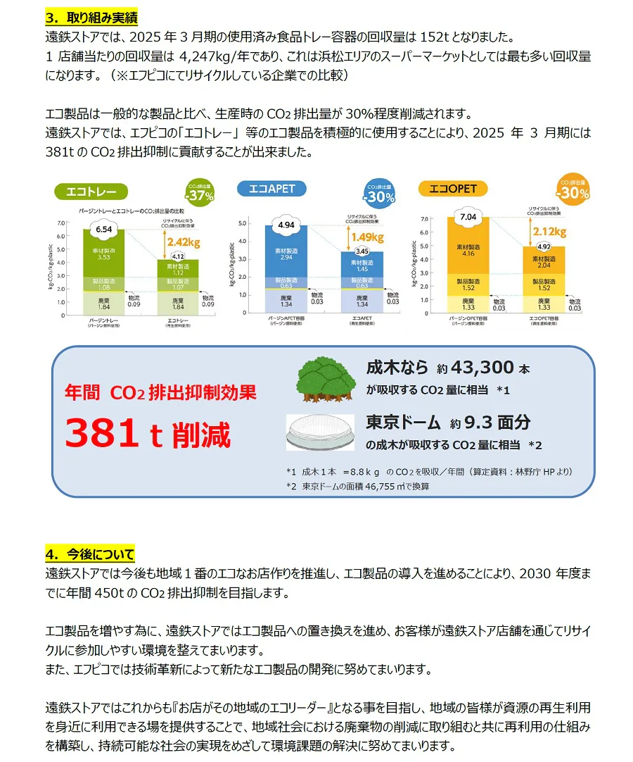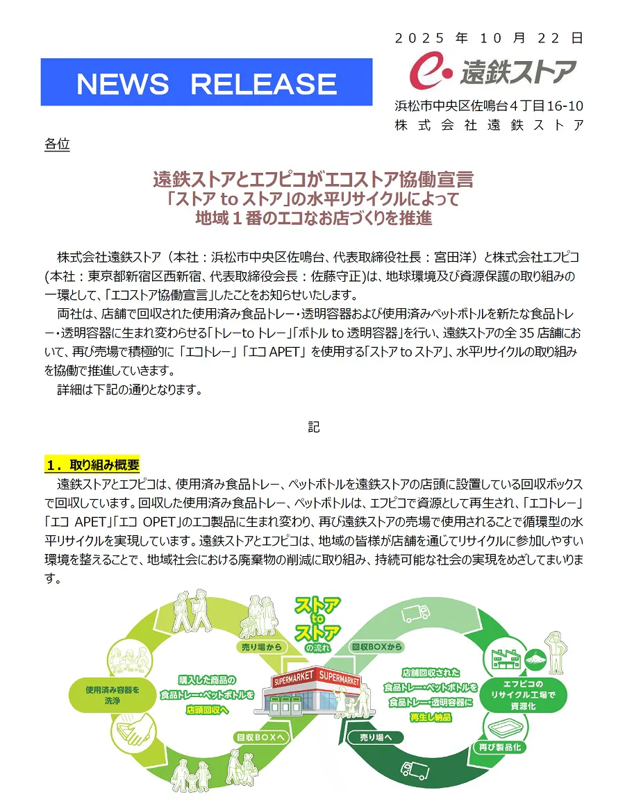 遠鉄ストアとエフピコがエコストア協働宣言「ストアtoストア」の水平リサイクルによって地域1番のエコなお店づくりを推進