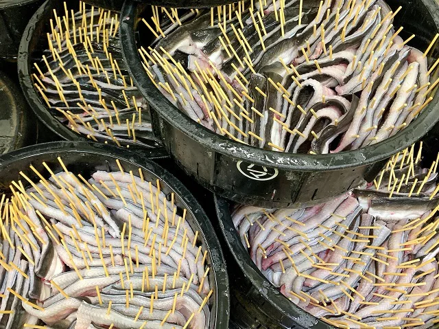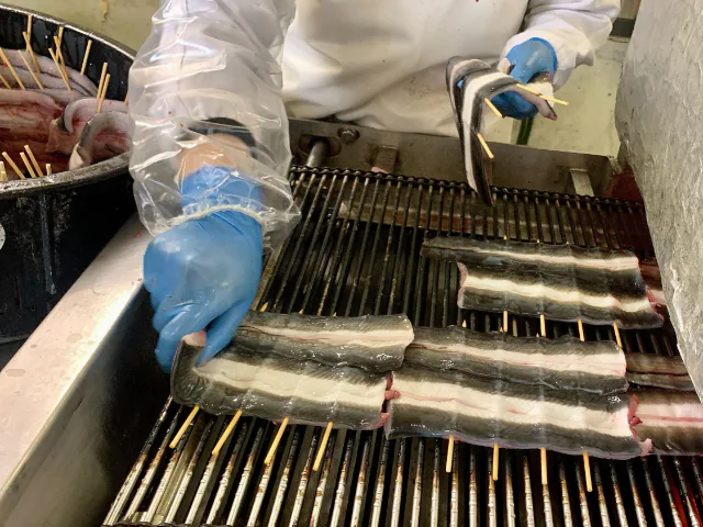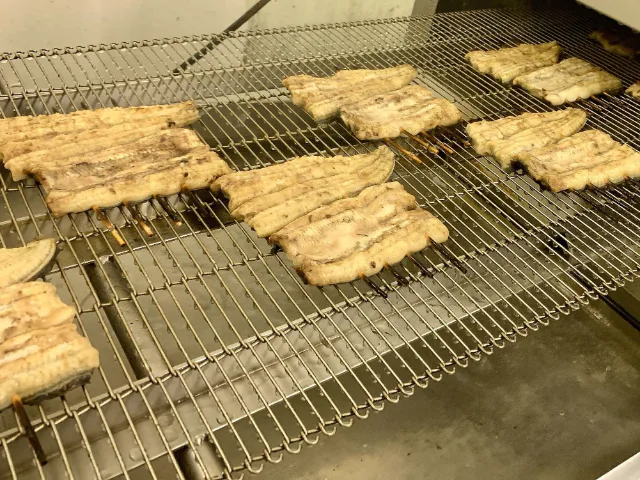この日は、ふっくらやわらかい白焼きの加工を行っていました。