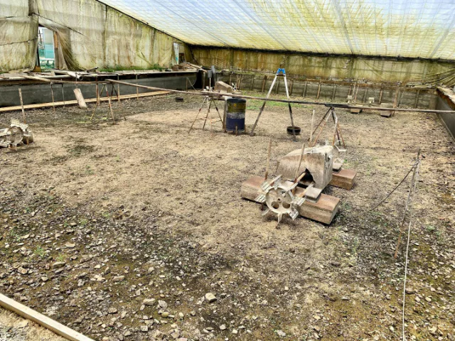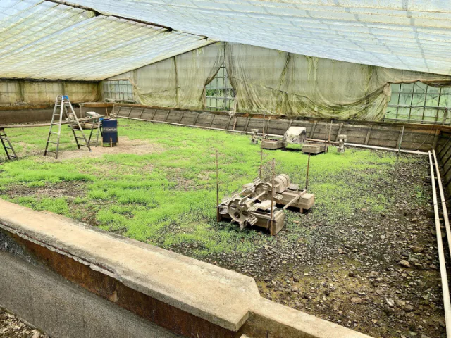 飼育していたうなぎを出荷したあとは、ハウス池の水を全て抜いて土を休ませるそうです。